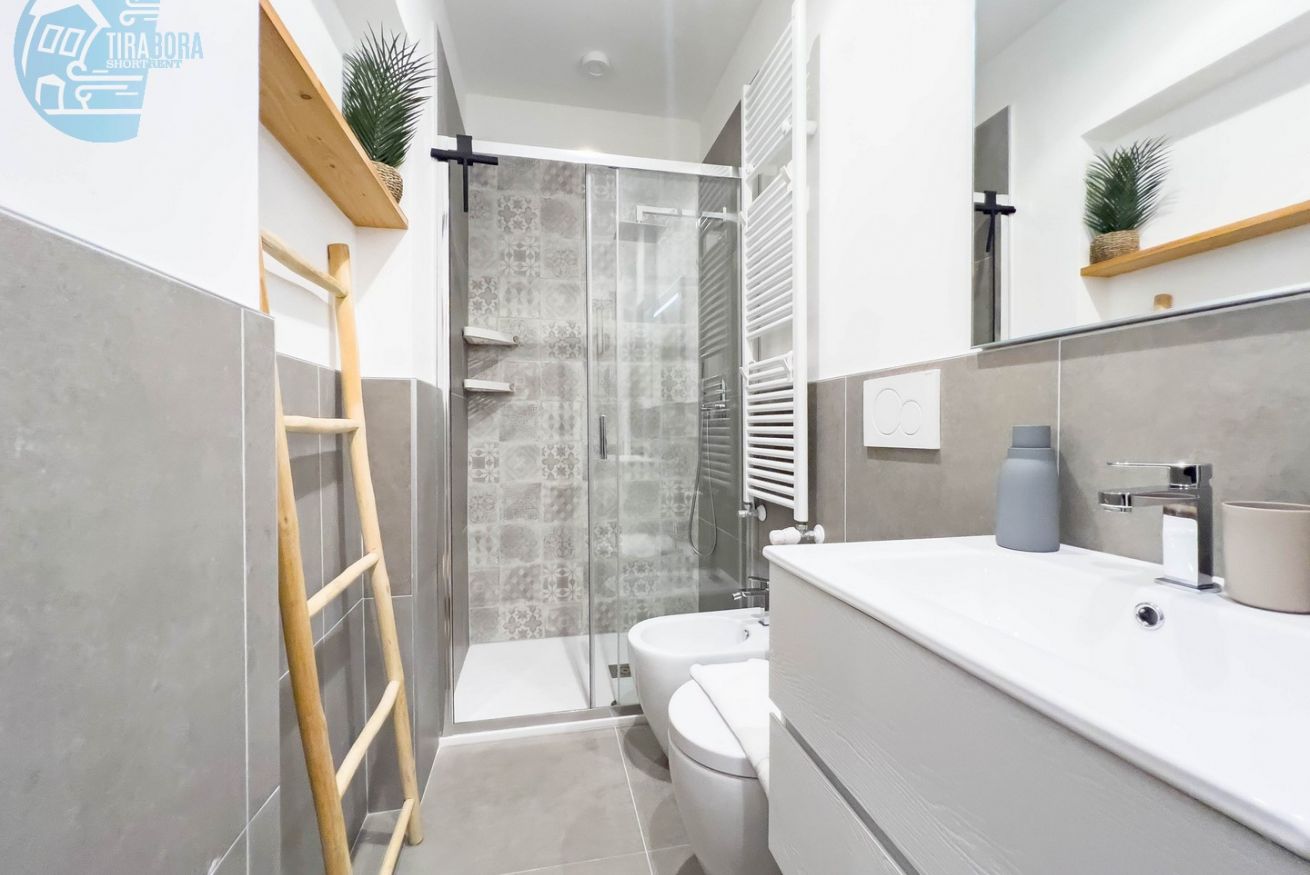 Il bagno è moderno e completo di una spaziosa doccia, asciugamani soffici saranno in dotazione per coccolarvi dopo una rigenerante doccia.